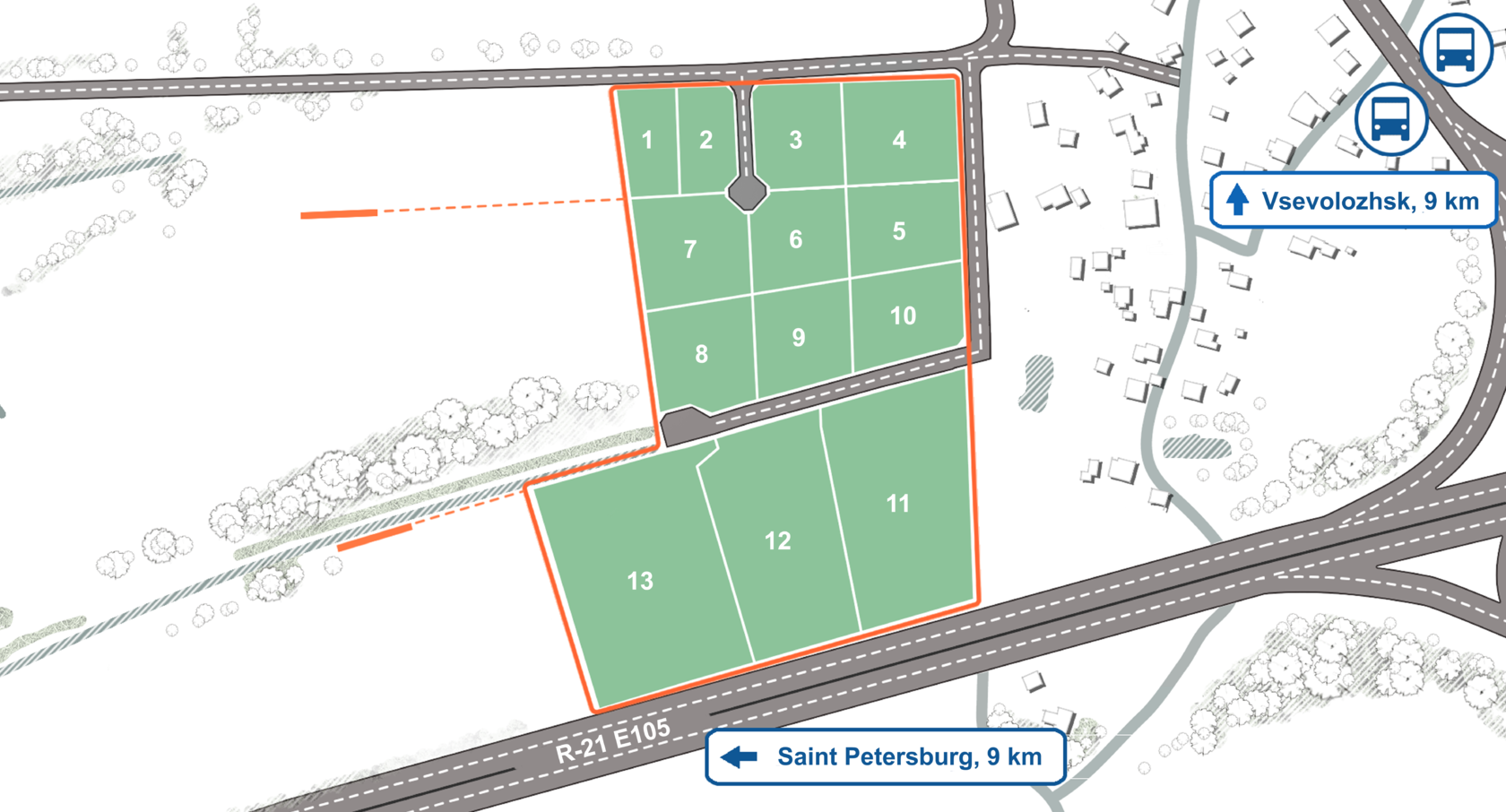 • 9 km form SPb Ring road on R-21 (E105) highway